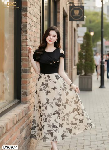 Thanh lịch & cuốn hút cùng mẫu váy DS6974 từ Dolce Viva Collection.Thiết kế tay hở vai tinh tế kết hợp chân váy xoè hoạ tiết bướm nổi bật – lựa chọn hoàn hảo cho nàng yêu phong cách nhẹ nhàng, nữ tính