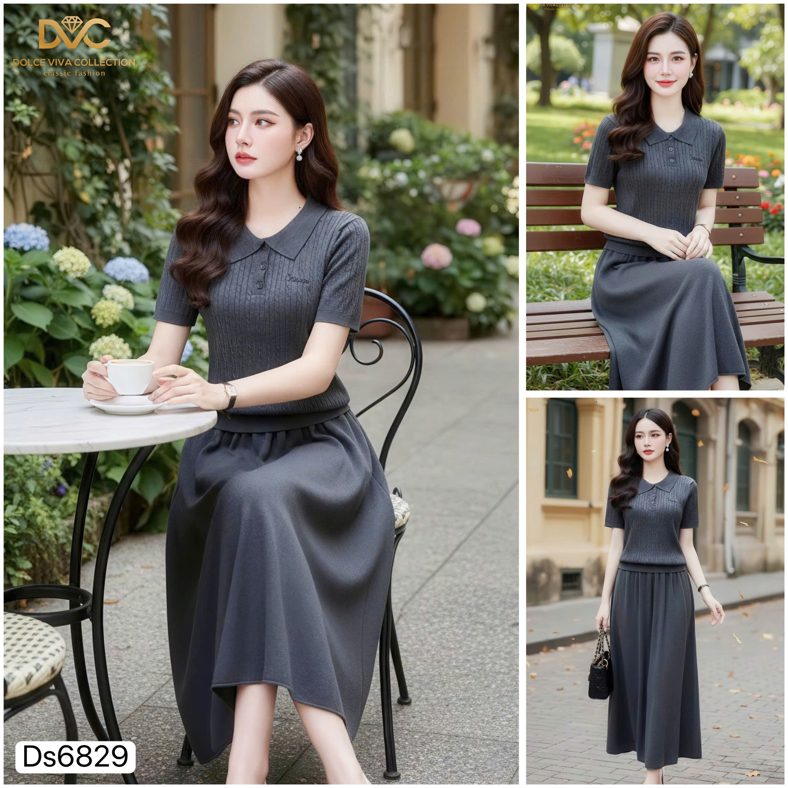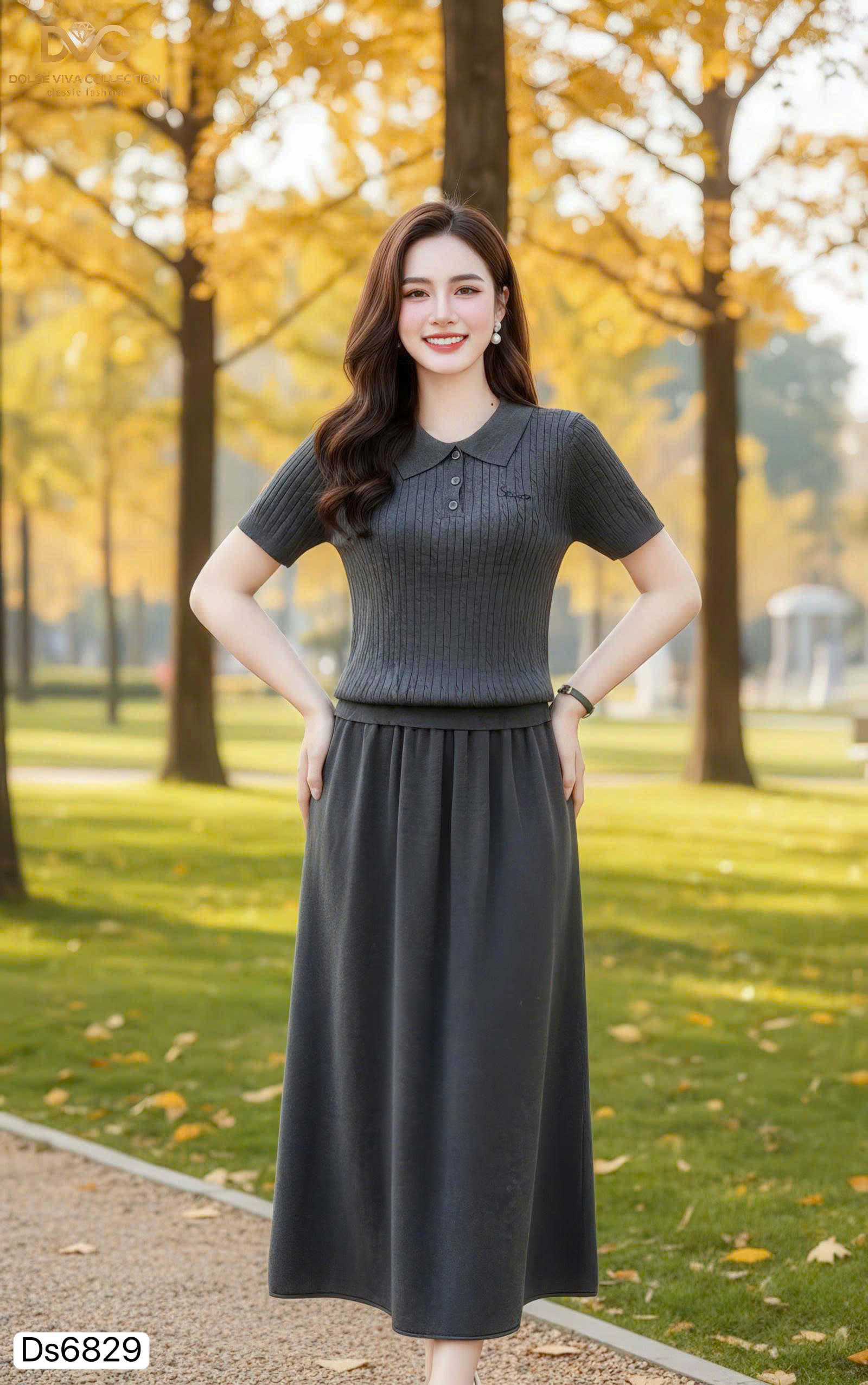 ⭐ Thiết kế phối áo cổ bẻ & chân váy dài sang trọng
